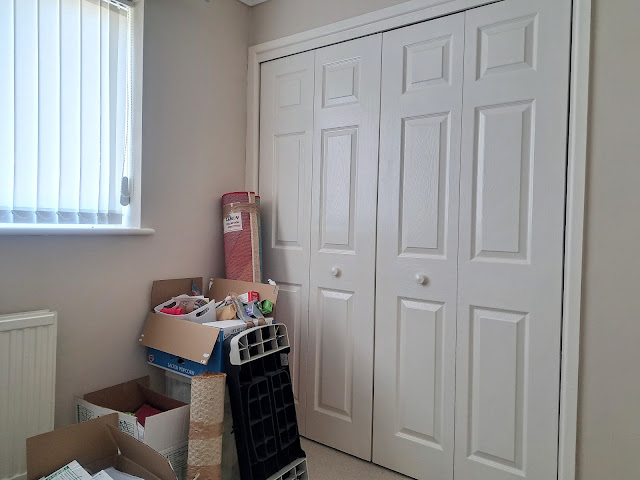 Next is the kitchen, again much bigger than the one in my previous home. The sellers removed all of the appliances except for a slimline dishwasher which doesn't seem to work! I knew they weren't leaving any appliances and the units are not as good as they look in the photos, so the kitchen will be Project 2. We went to IKEA on Wednesday to use their free design service and expertise. I like the layout and the cabinets I've chosen, but will buy the appliances somewhere else. My BiL is arranging for one of his friends to fit it for me. There's no date planned yet, but it will be done as soon as possible. In the meantime I am managing meals with an airfryer, a microwave, an Instant Pot, and a two ring hotplate. I have a freezer (which will eventually end up in the garage as a back-up), and am using cool boxes in place of a fridge.